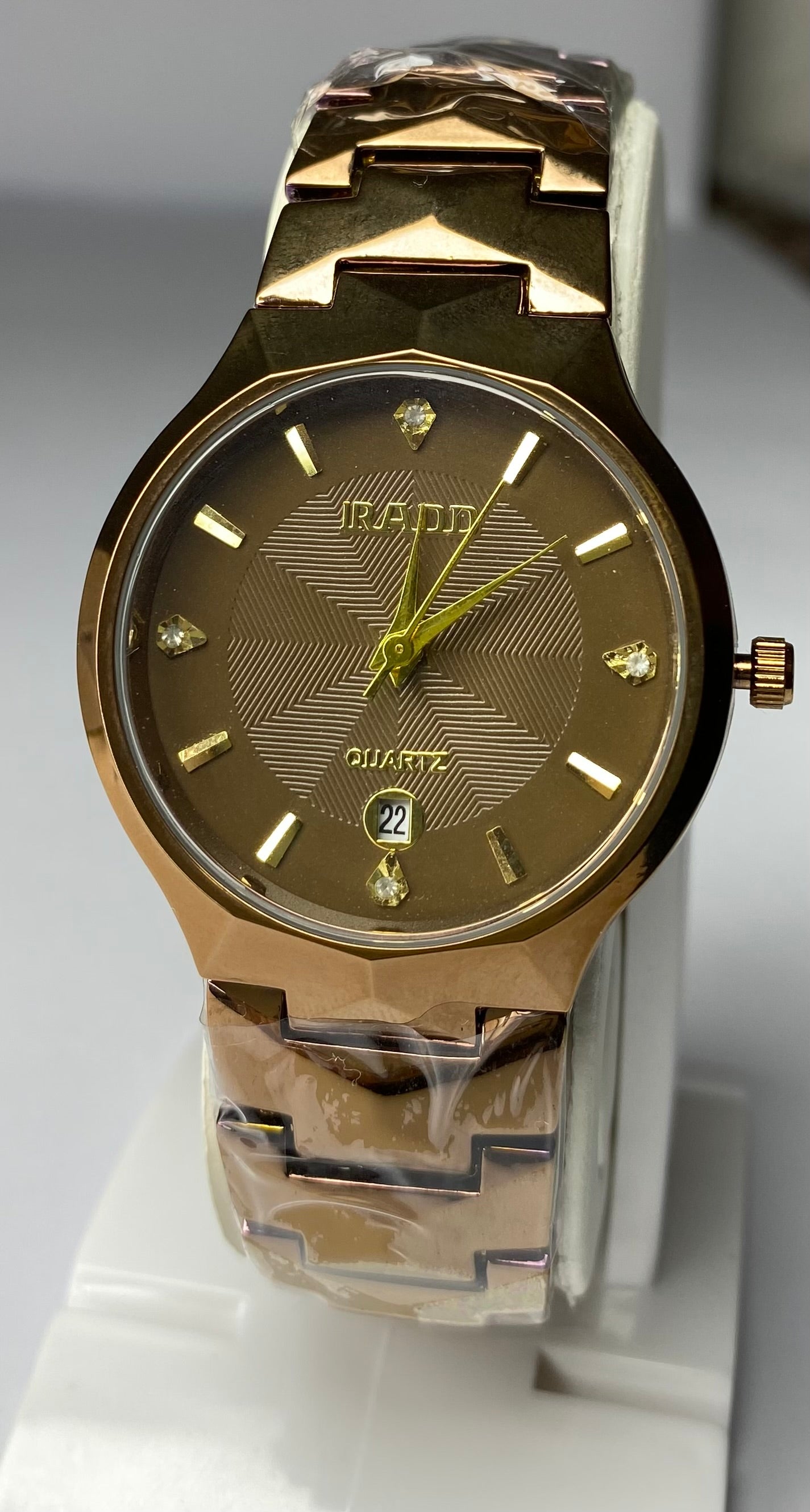 The IRADO Copper Quartz Dress Watch combines precise quartz movement with a refined gold-tone finish, offering reliable timekeeping and sophisticated style. Its sleek design makes it an ideal accessory for formal occasions, enhancing your ensemble with understated elegance. Durable and lightweight, this watch ensures comfort throughout the day while maintaining a polished appearance. Perfect for those who appreciate craftsmanship and classic aesthetics in a timepiece.