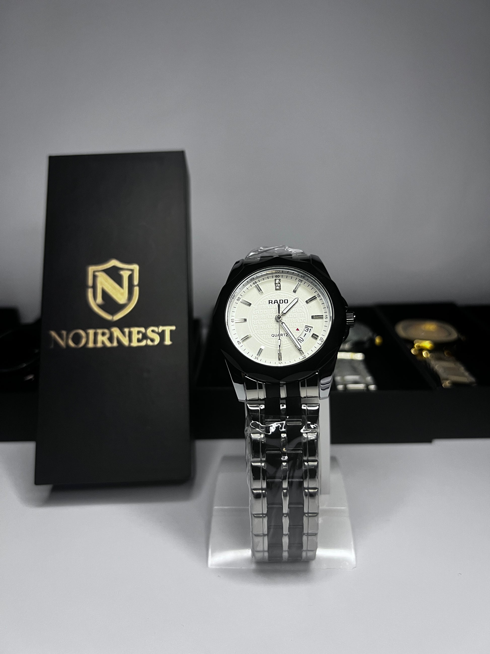 Elevate your style with this premium Rado Quartz Men’s Watch, designed for those who appreciate elegance and durability. Featuring a stainless steel strap with a glossy ceramic finish and a sophisticated round dial, this watch combines modern aesthetics with timeless class. Perfect for both formal and casual occasions.